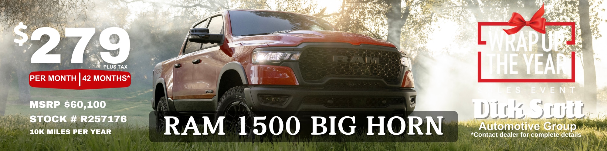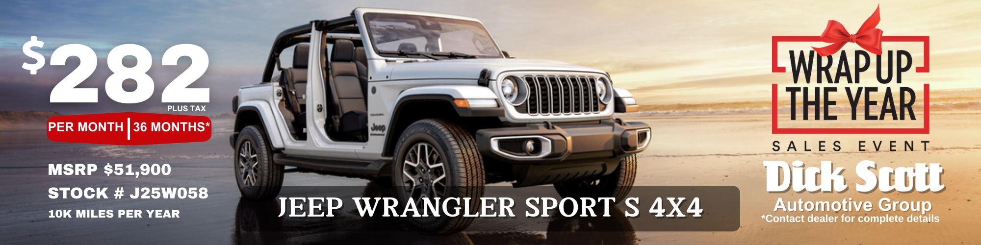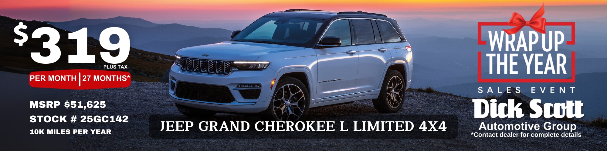 *Low-mileage lease for well qualified returning lessees. Based on Stock or an MSRP example shown on ad after all applicable rebates. Closed-end lease based on term stated above. All rebates to dealer. Leases with approved credit, must qualify for tier 1 credit through preferred lending institutions. All leases are 10k miles/year or as shown and .25 cents/mile overage. All payments are Plus Tax. Lessee responsible for excess wear and tear. $3995 cash due at signing plus 1st payment, taxes on cash and incentives down, plate, title, doc fee, and registration. Must qualify for Employee Pricing and all applicable rebates including returning lessee. Must take delivery from dealer stock. Offers expire 1/02/2026. Picture may not represent actual vehicle. See dealer for complete details. Offer available at Dick Scott Chrysler Dodge Jeep Ram in Plymouth or Dick Scott Motor Mall in Fowlerville.