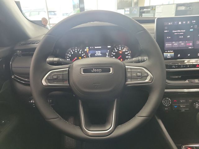This Compass Limited is nicely equipped with 4WD, 3.73 Final Drive Ratio, 4-Wheel Disc Brakes, 6 Speakers, ABS brakes, Active Cruise Control, Air Conditioning, Alloy wheels, AM/FM radio: SiriusXM with 360L, Anti-whiplash front head restraints, Apple CarPlay/Android Auto, Auto High-beam Headlights, Auto-dimming Rear-View mirror, Automatic temperature control, Brake assist, Bumpers: body-colour, Compass, Delay-off headlights, Driver door bin, Driver vanity mirror, Dual front impact airbags, Dual front side impact airbags, Electronic Stability Control, Emergency communication system: SiriusXM Guardian, Four wheel independent suspension, Front anti-roll bar, Front Bucket Seats, Front dual zone A/C, Front fog lights, Front reading lights, Fully automatic headlights, Heated door mirrors, Heated front seats, Heated steering wheel, Illuminated entry, Knee airbag, Leather Shift Knob, Leather steering wheel, Leatherette Seats, Low tire pressure warning, Occupant sensing airbag, Outside temperature display, Overhead airbag, Overhead console, Panic alarm, ParkView Rear Back-Up Camera, Passenger door bin, Passenger vanity mirror, Power door mirrors, Power driver seat, Power Liftgate, Power steering, Power windows, Premium audio system: UConnect 5, Radio: Uconnect 5 w/10.1" Display, Rain sensing wipers, Rear anti-roll bar, Rear window defroster, Rear window wiper, Remote keyless entry, Security system, Speed control, Split folding rear seat, Spoiler, Steering wheel mounted audio controls, Tachometer, Telescoping steering wheel, Tilt steering wheel, Traction control, Turn signal indicator mirrors, Variably intermittent wipers, and Wheels: 18" x 7" Painted Diamond Cut Aluminum...