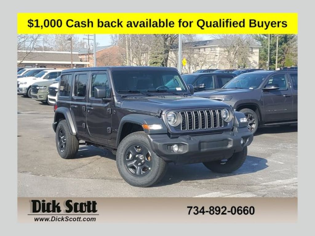 This Wrangler Sport is nicely equipped with Quick Order Package 22B Sport, 12.3" Touchscreen Display, 3.45 Overall Top Gear Ratio, 4-Wheel Disc Brakes, 4G LTE Wi-Fi Hot Spot, 8 Speakers, ABS brakes, Air Conditioning, AM/FM radio: SiriusXM with 360L, Apple CarPlay, Apple CarPlay/Android Auto, Aux Battery, Black 3-Piece Hard Top, Brake assist, Cloth Low-Back Bucket Seats, Compass, Connectivity - US/Canada, Deep Tint Sunscreen Windows, Delay-off headlights, Driver door bin, Driver vanity mirror, Dual front impact airbags, Dual front side impact airbags, Electronic Stability Control, For More Info, Call 800-643-2112, Freedom Panel Storage Bag, Front anti-roll bar, Front Bucket Seats, Front Center Armrest w/Storage, Front fog lights, Front reading lights, Google Android Auto, Illuminated entry, Integrated Center Stack Radio, Integrated roll-over protection, Low tire pressure warning, MOPAR All-Weather Floor Mats, Non-Lock Fuel Cap Without Discriminator, Normal Duty Suspension, Occupant sensing airbag, Outside temperature display, Overhead airbag, Panic alarm, ParkView Rear Back-Up Camera, Passenger door bin, Passenger vanity mirror, Power steering, Power windows, Radio data system, Radio: Uconnect 5 with 12.3" Display, Rear anti-roll bar, Rear reading lights, Rear Window Defroster, Rear Window Wiper/Washer, Remote keyless entry, SiriusXM Radio Service, SiriusXM with 360L, Speed control, Split folding rear seat, Steering wheel mounted audio controls, Stop-Start Dual Battery System, Tachometer, Telescoping steering wheel, Tilt steering wheel, Traction control, Trip computer, Variably intermittent wipers, and Wheels: 17" x 7.5" Black Steel Styled... Customers must qualify for FCA employee pricing and qualify for the following rebates, Price includes: $1000 - 2026 National Retail Bonus Cash . Exp. 04/30/2026