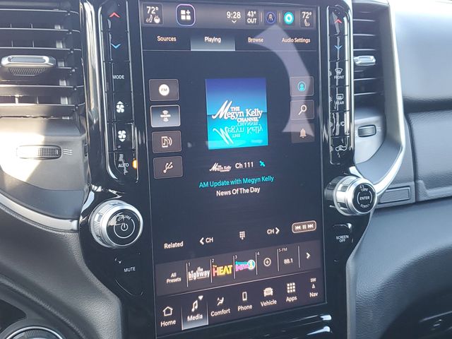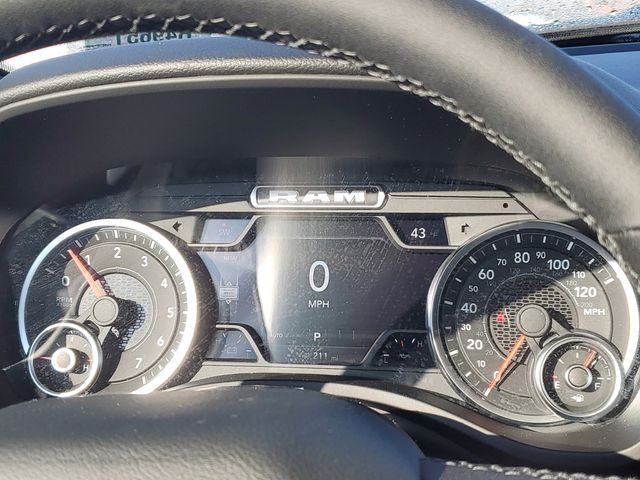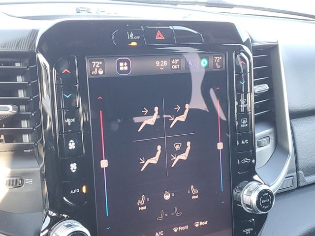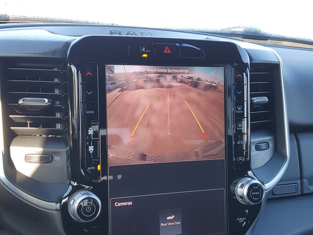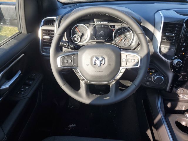 This 1500 Big Horn/Lone Star is nicely equipped with Big Horn Level 2 Equipment Group (115V Auxiliary Power Outlet, 115V Auxiliary Rear Power Outlet, 12" Touchscreen Display, 2nd Row in Floor Storage Bins, 3 Rear Seat Head Restraints, 4 Way Front Headrests, 400W Inverter, 4G LTE Wi-Fi Hot Spot, 9 Amplified Speakers with Subwoofer, Air Conditioning ATC with Dual Zone Control, Apple CarPlay, Auto Power-Folding Mirrors, Auto-Dimming Exterior Driver Mirror, Auto-Dimming Rear-View Mirror, Black Exterior Mirrors, Black Premium Power Mirrors, Body Color Fender Flares, Bucket Seats, Center Console Parts Module, Cluster 7.0" TFT Color Display, Configurable Drive Mode, Connected Travel and Traffic Services, Connectivity - US/Canada, Convex Wide-Angle Exterior Mirror Insert, Deluxe Cloth Bucket Seats, Disassociated Touchscreen Display, Exterior Mirrors Courtesy Lamps, Exterior Mirrors with Heating Element, Exterior Mirrors with Supplemental Signals, Front Seat Back Map Pockets, Full Length Floor Console, Global Telematics Box Module, Glove Box Lamp, Google Android Auto, GPS Antenna Input, GPS Navigation, HD Radio, Heated Front Seats, Heated Steering Wheel, Integrated Center Stack Radio, Integrated Voice Command with Bluetooth, Leather Wrapped Steering Wheel, LED Dome Lamp with on/Off Switch, LED Footwell Lighting, Manual Adjust 4-Way Front Passenger Seat, Media Hub with 2 Charge Only USBs, Overhead LED Lamps, Power 2-Way Driver Lumbar Adjust, Power Adjust 8-Way Driver Seat, Power Adjustable Pedals, Premium Overhead Console, Radio: Uconnect 5 Navigation with 12.0" Display, Rear 60/40 Folding Seat, Rear Center Armrest, Rear Power Sliding Window, Rear Window Defroster, Remote Tailgate Release, Security Alarm, SiriusXM Radio Service, SiriusXM with 360L, Steering Wheel Mounted Audio Controls, Sun Visors with Illuminated Vanity Mirrors, Universal Garage Door Opener, and USB Host Flip), Quick Order Package 27Z Big Horn, Sport Appearance Package (Black Interior Accents, Body Color Door Handles, Body Color Front Bumper, Body Color Rear Bumper with Step Pads, Body Color Tailgate Handle, Grille Surround 1 Body Color Texture 1 Black, and RAM Grille Badge - Chrome), 4-Wheel Disc Brakes, 48V Belt Starter Generator, 6 Speakers, ABS brakes, Air Conditioning, Alloy wheels, AM/FM radio, Anti-Spin Differential Rear Axle, Apple CarPlay/Android Auto, Auto High-beam Headlights, Brake assist, Bumpers: chrome, Cloth Bucket Seats, Compass, Delay-off headlights, Driver door bin, Dual front impact airbags, Dual front side impact airbags, Electronic Stability Control, Front anti-roll bar, Front Bucket Seats, Front Center Armrest w/Storage, Front fog lights, Front License Plate Bracket, Front reading lights, Front wheel independent suspension, Fully automatic headlights, Heated door mirrors, Illuminated entry, Low tire pressure warning, Manual Adjust 4-Way Driver Seat, Manual Folding Exterior Mirrors, Occupant sensing airbag, Outside temperature display, Overhead airbag, Overhead console, Panic alarm, ParkView Rear Back-Up Camera, Passenger door bin, Passenger vanity mirror, Power door mirrors, Power steering, Power windows, Radio data system, Radio: Uconnect 5 W with 8.4" Display, Rear anti-roll bar, Rear step bumper, Remote keyless entry, Speed control, Supplier Part Tracking (J-1), Tachometer, Telescoping steering wheel, Tilt steering wheel, Traction control, Trailer Brake Control, Trip computer, Variably intermittent wipers, and Voltmeter.
