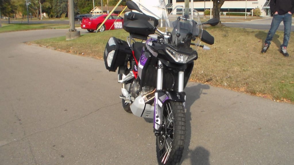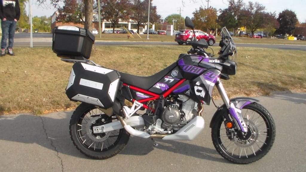 Engine Type: Parallel Twin Displacement: 40.2 cu. in. (659 cc) Bore and Stroke: Bore: 3.19 in. (81 mm); Stroke: 2.52 in. (63.9 mm) Cooling: Liquid Fuel System: Gas Transmission: Manual Final Drive: 2.8 Front Suspension: Telescopic Fork Rear Suspension: Twin Sided Swing Arm Front Brakes: Dual Hydraulic Disc Rear Brakes: Hydraulic Disc Front Tire: 90/90 - R21 Rear Tire: 150/70 -R18 Wheelbase: 60 in. (1524 mm) Seat Height: 33.9 in. (861.1 mm) Rake: 26.7 Trail: 4.5 in. (114.3 mm) Fuel Capacity: 4.8 gal. (18 L) Dry Weight: 412 lb. (187 kg.) Speedometer: Standard Tachometer: Standard Odometer: Standard