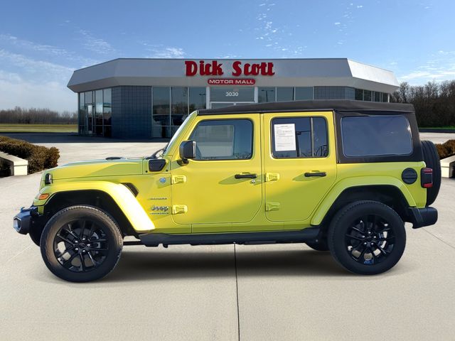 Recent Arrival! **ACCIDENT FREE CAR FAX**, **4X4**, **NAVIGATION**, **LEATHER**, **HEATED SEATS**, **REMOTE START**, **BACK UP CAMERA**, Wrangler Sahara 4xe, 4D Sport Utility, 2.0L I4 DOHC, 8-Speed Automatic, 4WD, High Velocity Clearcoat, Black Leather, 4-Wheel Disc Brakes, ABS brakes, Cold Weather Group, Heated Front Seats, Heated Steering Wheel, Navigation System, Quick Order Package 29P Sahara, Remote Start System. Odometer is 5727 miles below market average!