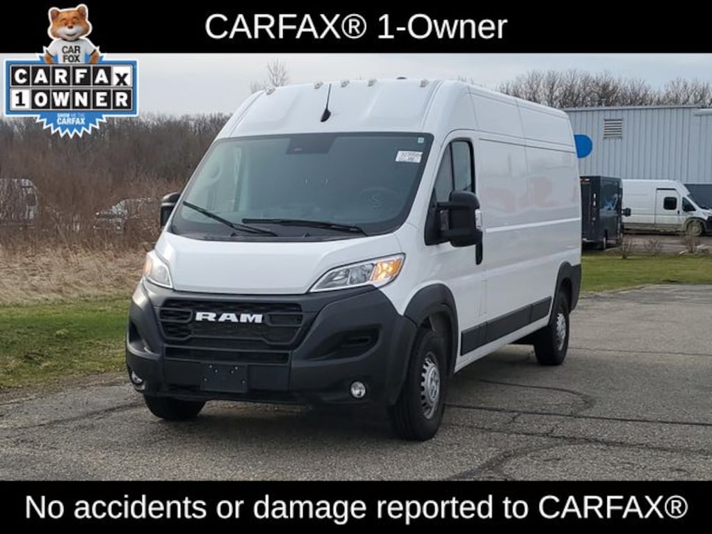 **ONE OWNER CAR FAX**, **ACCIDENT FREE CAR FAX**, ProMaster 2500 High Roof, 3D Cargo Van, 3.6L V6 24V VVT, 9-Speed 948TE Automatic, FWD, Bright White Clearcoat, Black Cloth, 4-Way Manual Adjust Front Passenger Seat, 4-Wheel Disc Brakes, ABS brakes, Convenience Group, Exterior Mirrors w/Heating Element, Exterior Mirrors w/Supplemental Signals, Front Fog Lamps, Passenger Bucket Seat, Power Adjust Mirrors, Power Folding/Heated Mirrors, Power-Adjustable Convex Aux Mirrors, Power-Folding Mirrors, Quick Order Package 22B Tradesman w/Pass Seat, Rear Cargo LED Lamp. Odometer is 13140 miles below market average!