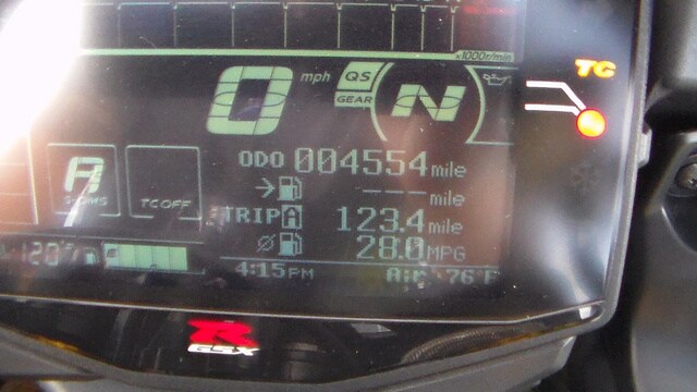 Engine Type: Horizontal In-line Displacement: 61 cu. in. (999.8 cc) Bore and Stroke: Bore: 2.99 in. (76 mm); Stroke: 2.17 in. (55.1 mm) Cooling: Liquid Compression Ratio: 13.2:1 Fuel System: Gas Transmission: Manual Final Drive: 2.647 Front Suspension: Inverted Fork Rear Suspension: Twin Sided Swing Arm Front Brakes: Dual Hydraulic Disc Rear Brakes: Hydraulic Disc Front Tire: Bridgestone® RS11 120/70 ZR17M/C 58W Rear Tire: Bridgestone® RS11 190/55 ZR17M/C 75W Wheelbase: 55.9 in. (1420 mm) Seat Height: 32.5 in. (825 mm) Rake: 23.2 Trail: 3.7 in. (95 mm) Fuel Capacity: 4.2 gal. (16 L) Speedometer: Standard Tachometer: Standard Odometer: Standard