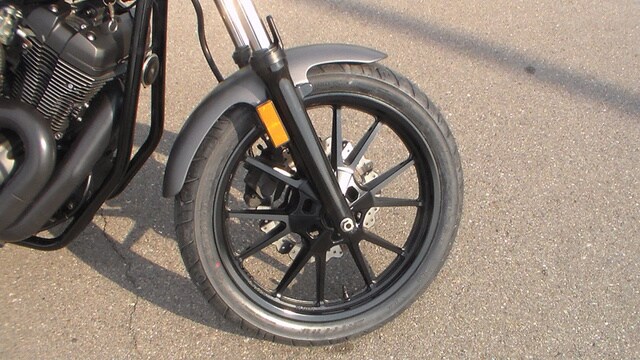 Displacement: 58-cu.in. (942cc) Engine Type: 4-stroke, V-Twin, SOHC, 4-valve Bore and Stroke: 85.0 x 83.0mm Cooling: Air Compression Ratio: 9.0:1 Fuel System: Fuel injected Ignition: TCI (Transistor Controlled Ignition) Front Suspension: Telescopic fork, 4.7-in. travel Rear Suspension: Dual shocks, 2.8-in. travel Front Brakes: Wave-type disc, 298mm Rear Brakes: Wave-type disc, 298mm Front Tire: 100/90-19M/C 57H Rear Tire: 150/80-16M/C 71H Wheelbase: 61.8 in. Seat Height: 27.2 in. Fuel Capacity: 3.2 gal. MPG: 47 mpg Dry Weight: Curb Weight: 540 lb. Transmission: 5-speed multiplate wet clutch Final Drive: Belt Speedometer: Standard: Digital Colors: Matte Gray, Camo Green